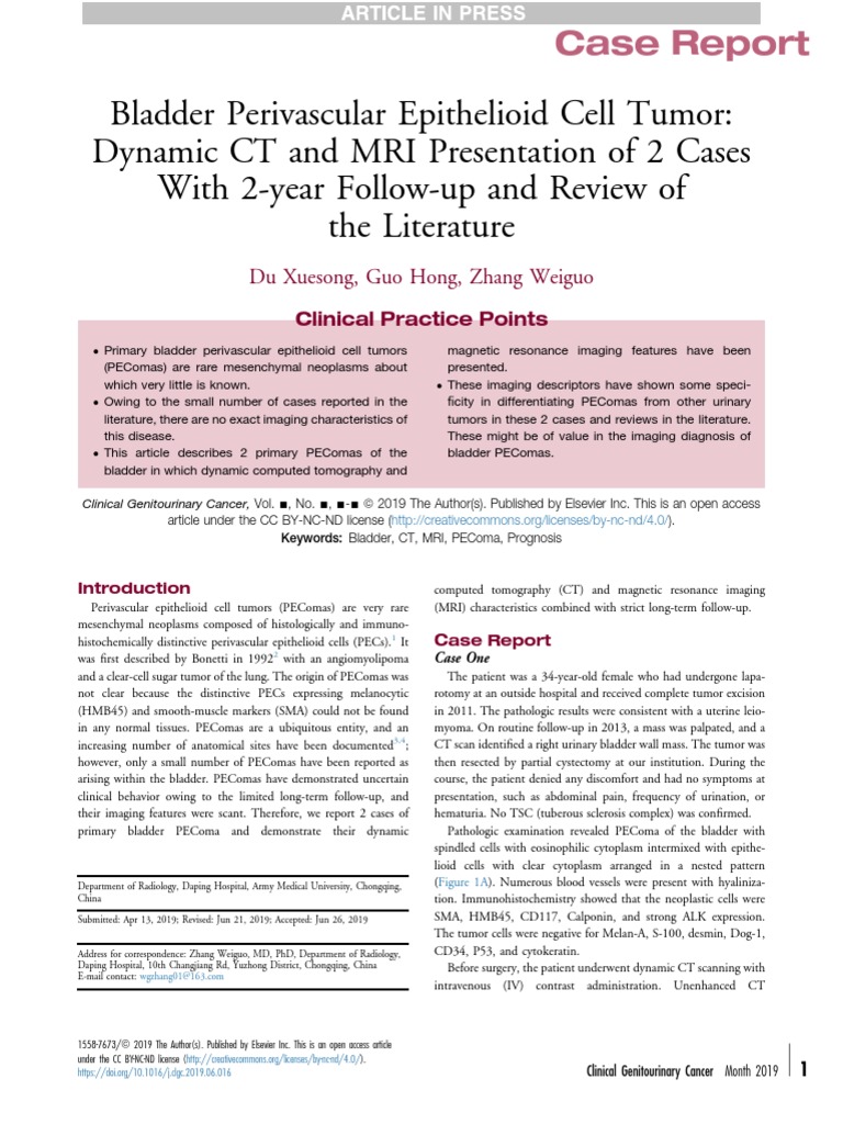 Bladder Pecoma Dynamic CT and MRI Presentation of 2 Cases With 2yr