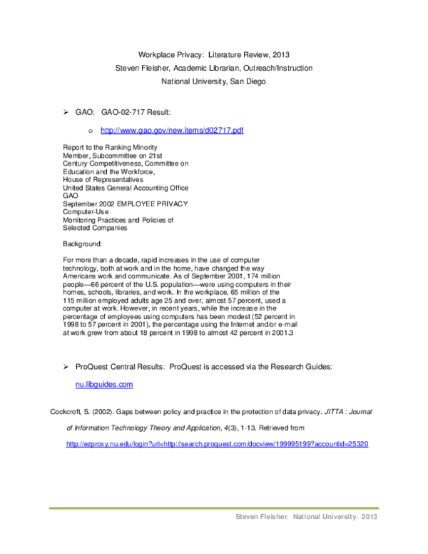 (PDF) Workplace privacy: Literature review 2013