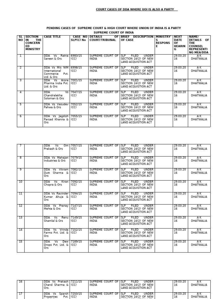 Court Cases of Dda Where Uoi Is Also A Party291215 PDF Judiciaries