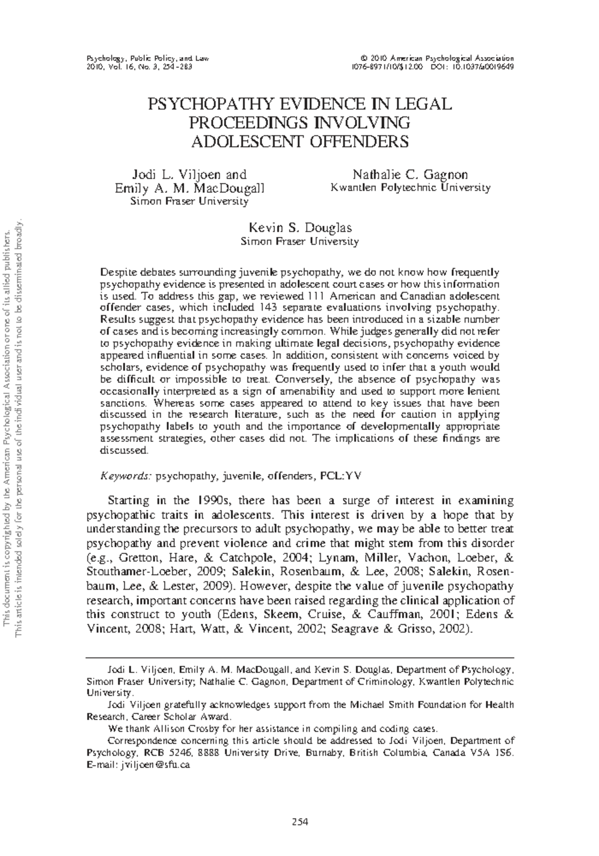 Psychology 201: Psychopathy Evidence in Adolescent Legal Cases Studocu