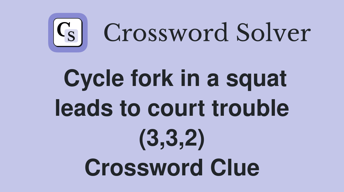 Cycle fork in a squat leads to court trouble (3 3 2) Crossword Clue