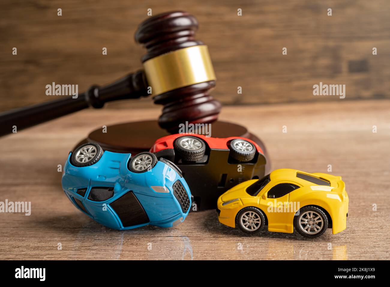 Lawyer Gavel Scale of Justice Toy Car on Desk Represent Accident
