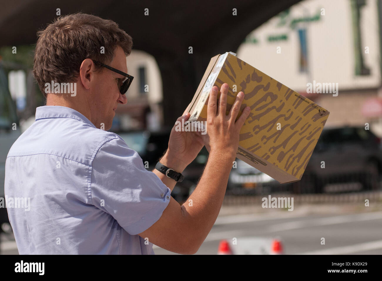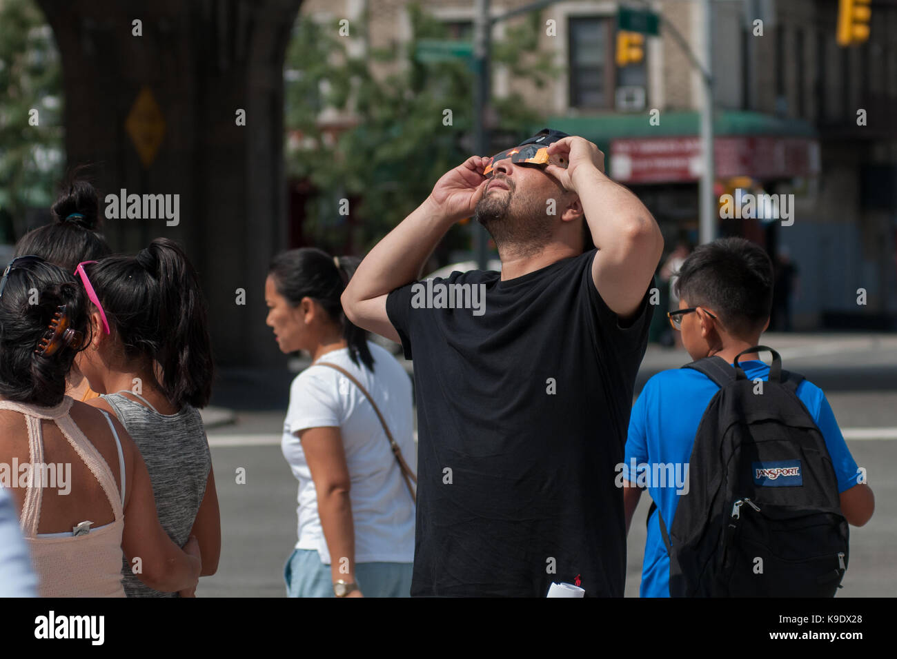 Solar eclipse seen from the streets of Queens in New York Featuring
