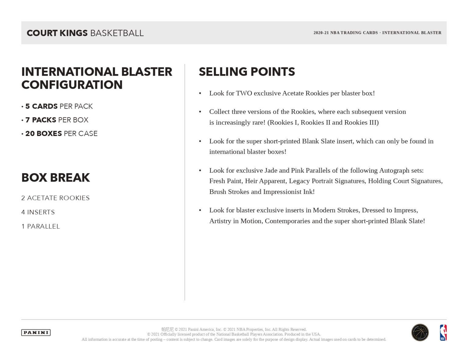 🏀 NBA 2020 21 PANINI COURT KINGS INTERNATIONAL BLASTER【製品情報】 Trading