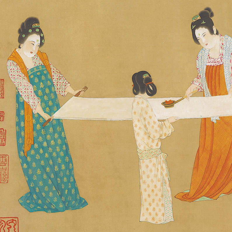 Court Ladies Preparing Newly Woven Silk 搗練圖張萱 Etsy