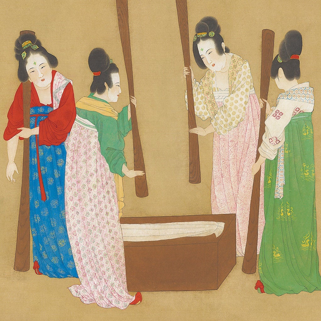 Court Ladies Preparing Newly Woven Silk Attributed to Emperor Huizong