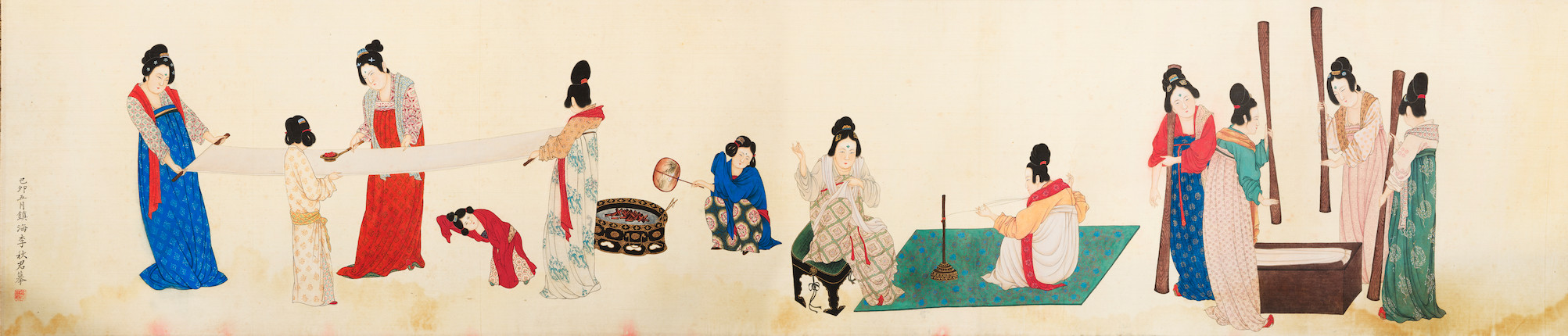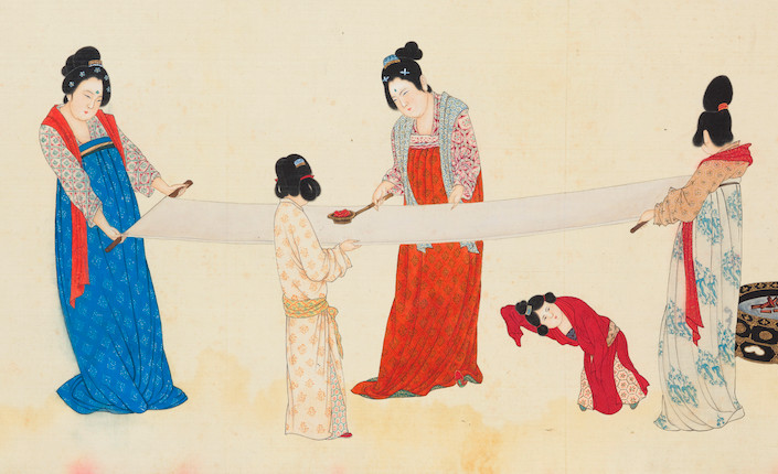 Bonhams : Li Qiujun (1899 1973) Court Ladies Preparing Newly Woven Silk