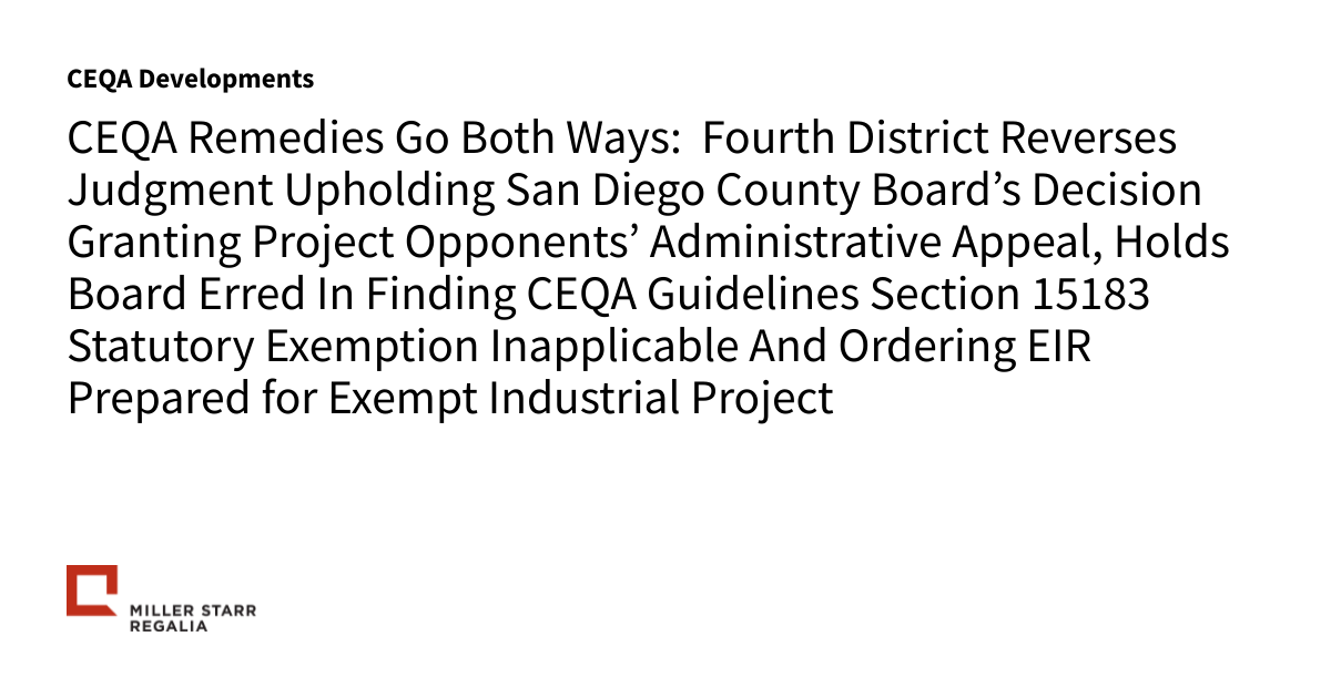 CEQA Remedies Go Both Ways: Fourth District Reverses Judgment Upholding