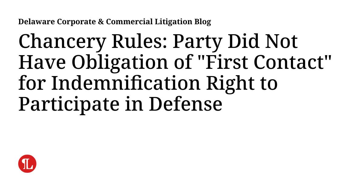 Chancery Rules: Party Did Not Have Obligation of quot First Contact quot for