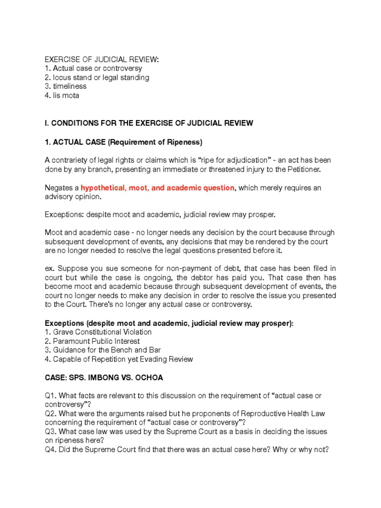 I Conditions For The Exercise of Judicial Review 1 ACTUAL CASE