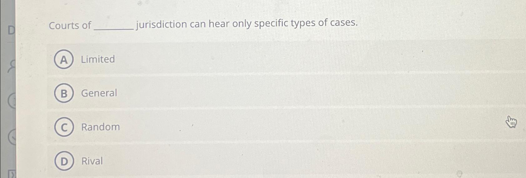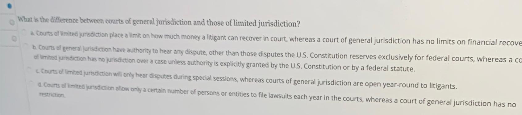Solved Courts of jurisdiction can hear only specific types Chegg com