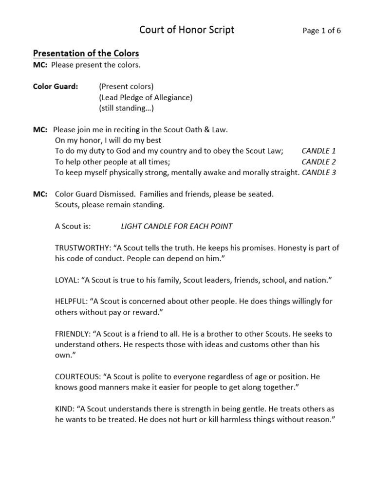 Court of Honor Script Troop 409 / court of honor script troop 409 pdf