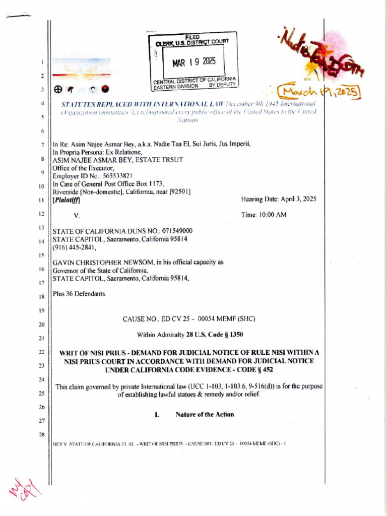 Writ of Nisi PriusWRIT OF NISI PRIUS DEMAND FOR JUDICIAL NOTICE OF