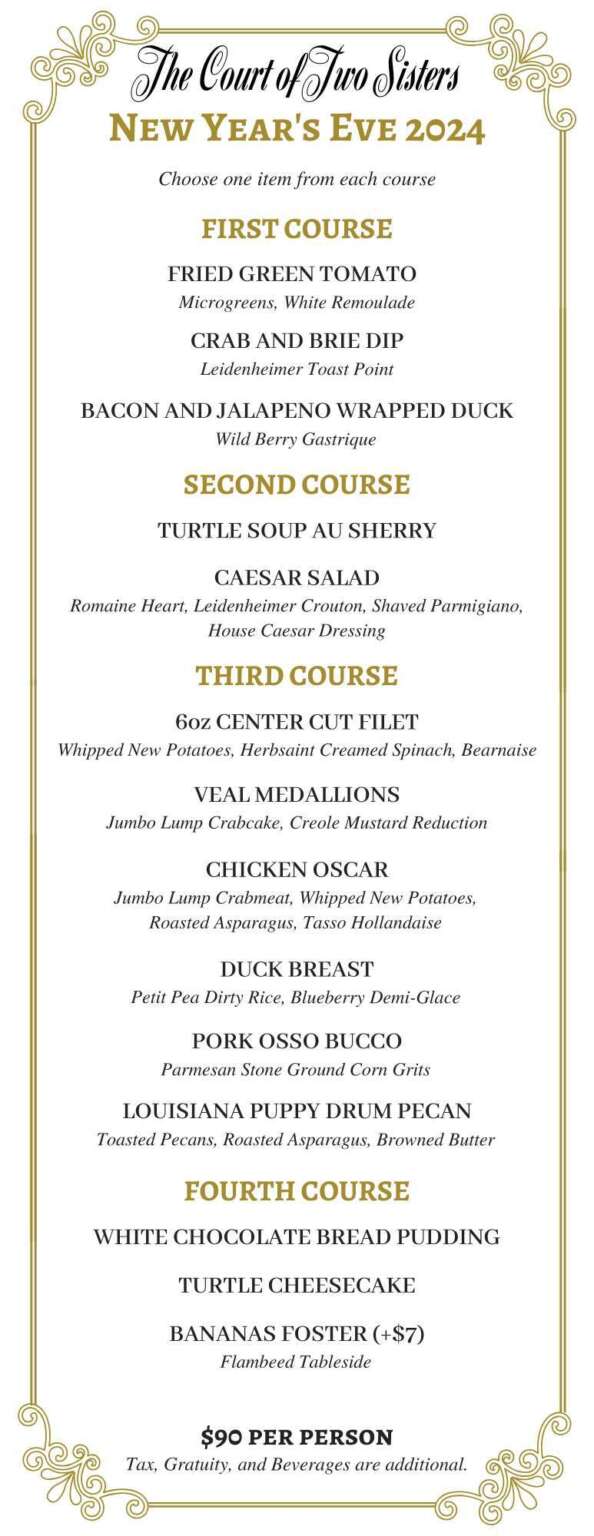 Special December Dinner Menus Court of Two Sisters