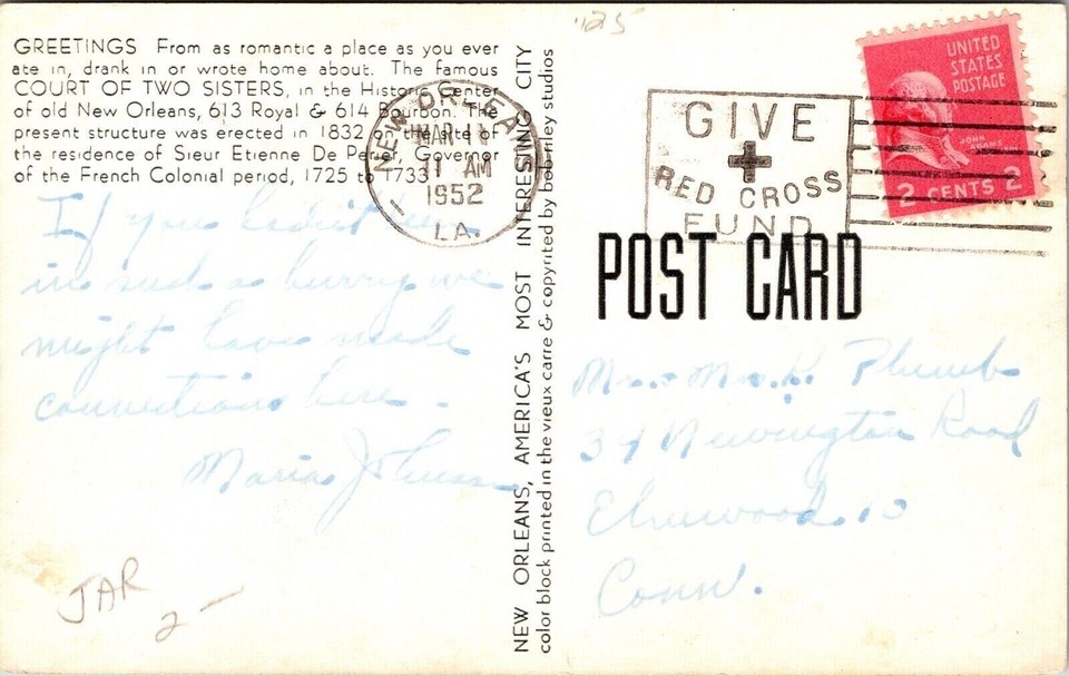 New Orleans LA Postcard Early 1900s Court Two Sisters Royal St Trolley