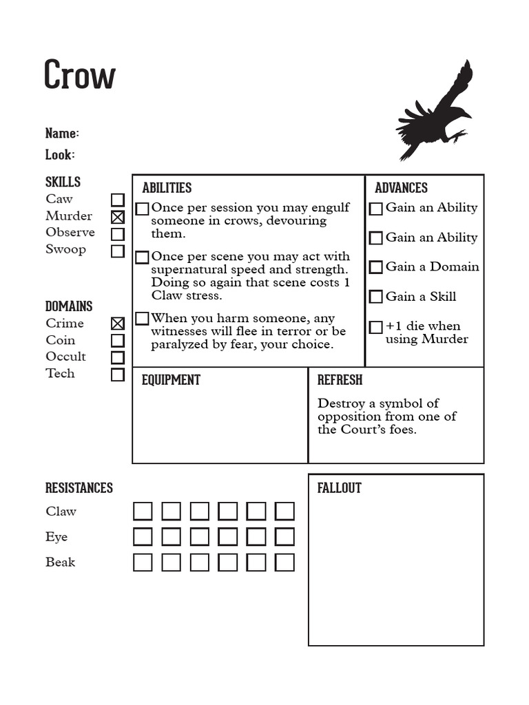Corvid Court Character Sheets PDF