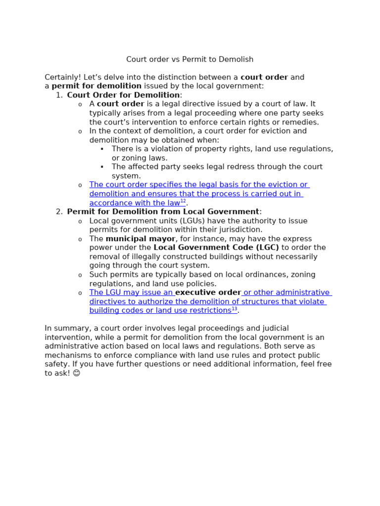 Court Order Vs Permit To Demolish PDF