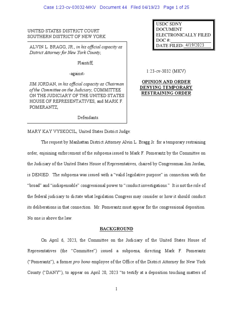Court Order Regarding Pomerantz Subpoena PDF Standing (Law