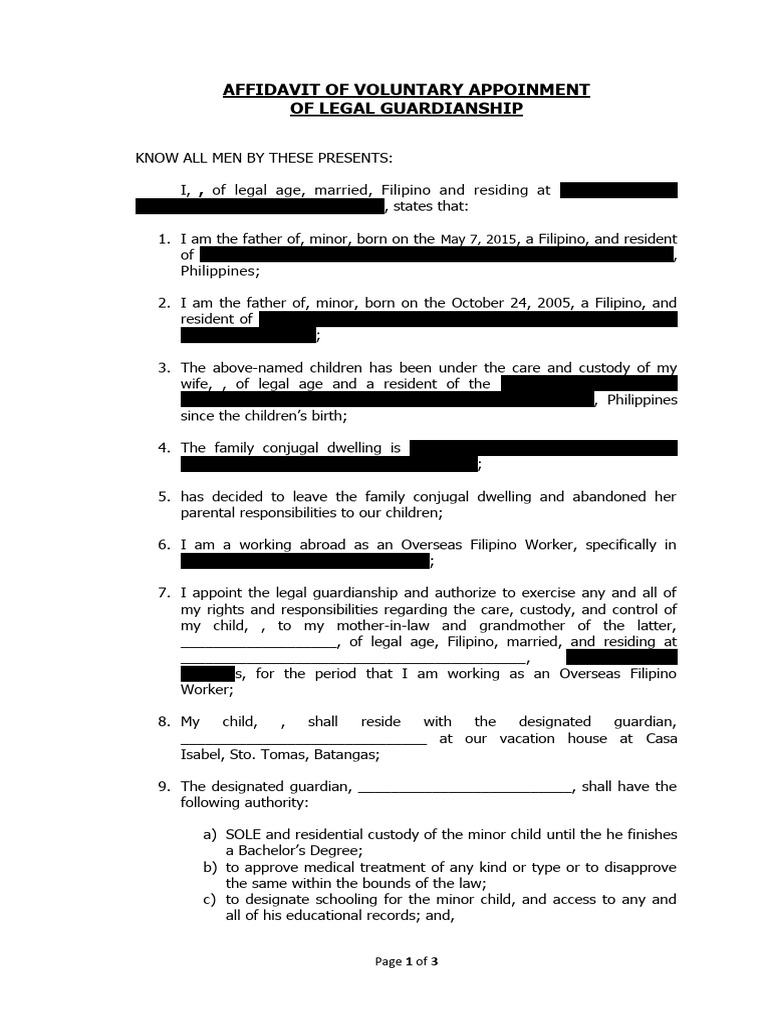 Affidavit of Voluntary Appoinment of Legal Guardianship PDF Legal