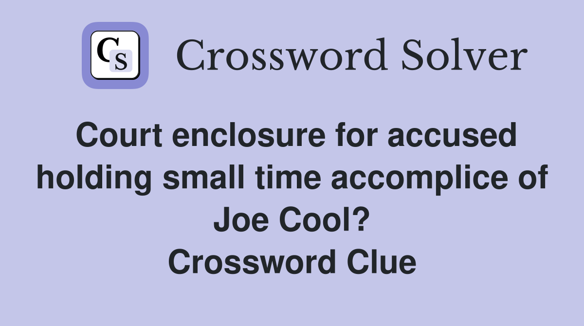 Court enclosure for accused holding small time accomplice of Joe Cool