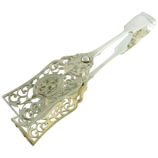 Silver Plate Asparagus or Pastry Tongs Bright Cut Engraving 43