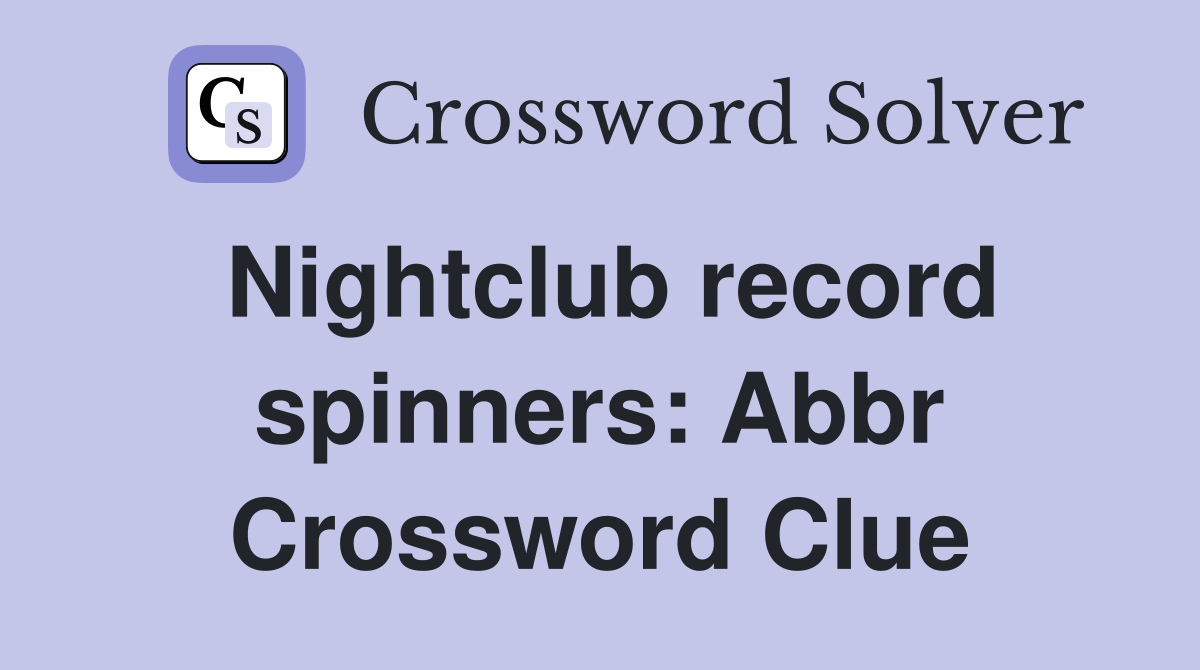 Nightclub record spinners: Abbr Crossword Clue Answers Crossword
