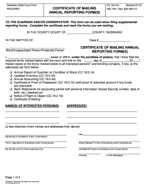 Fillable Online Certificate of Mailing Annual Reporting Form(s) State