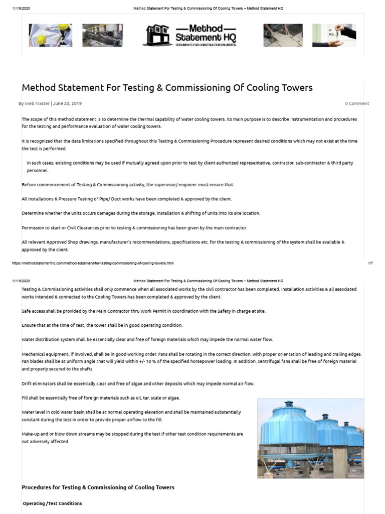 MS Testing Commissioning Of Cooling Towers Method Statement HQ PDF