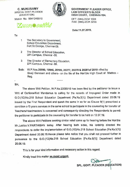 Transfer Counselling 2019 Court Stay Order உயர்நீதி மன்றம் தடை ஆணை