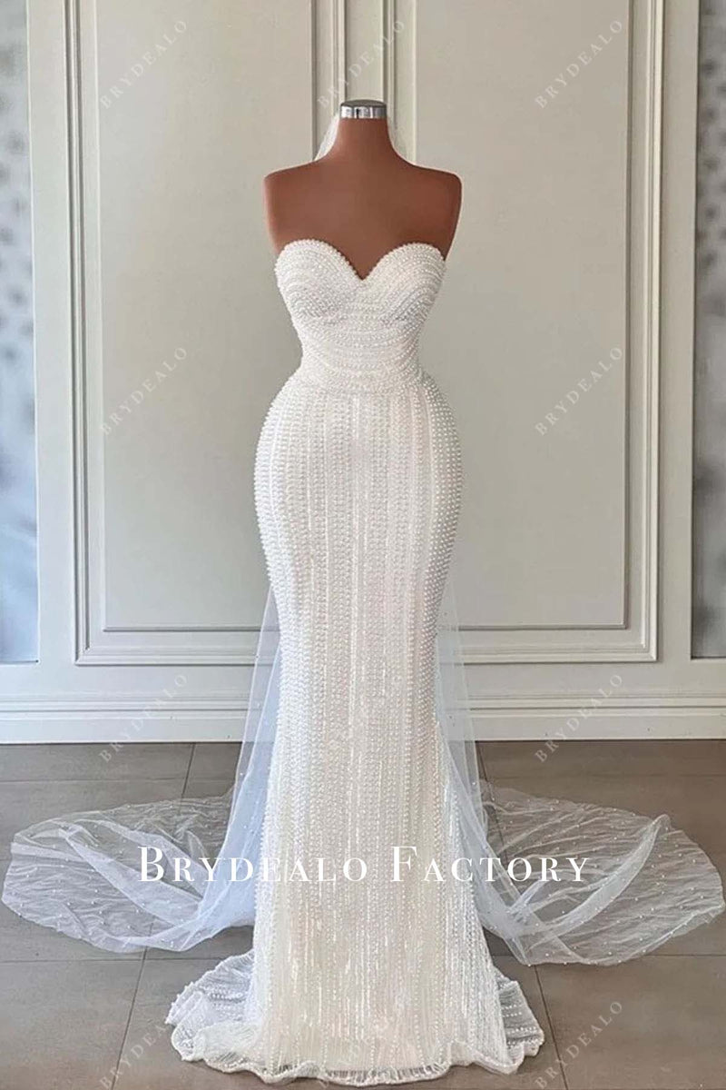 White Pearls Strapless Fit And Flare Court Train Wedding Dress