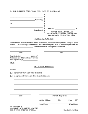 Fillable Online courts alaska NOTICE TO PLAINTIFF Probate Guardianship
