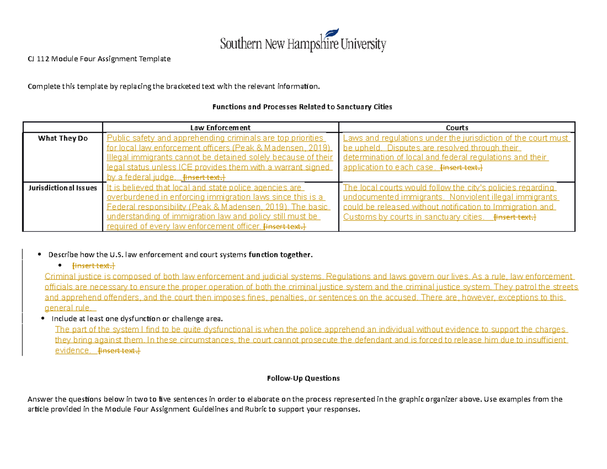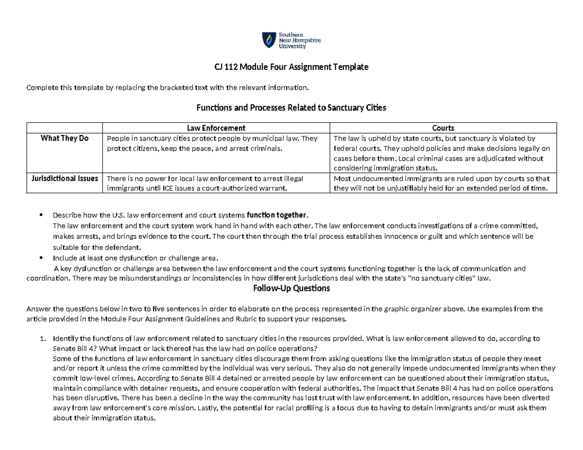 CJ 112 Module 4 Assignment: Law Enforcement Courts in Sanctuary
