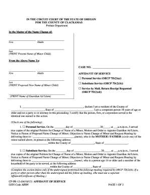 Fillable Online courts oregon Affidavit of Service for Minor (CP PR 12