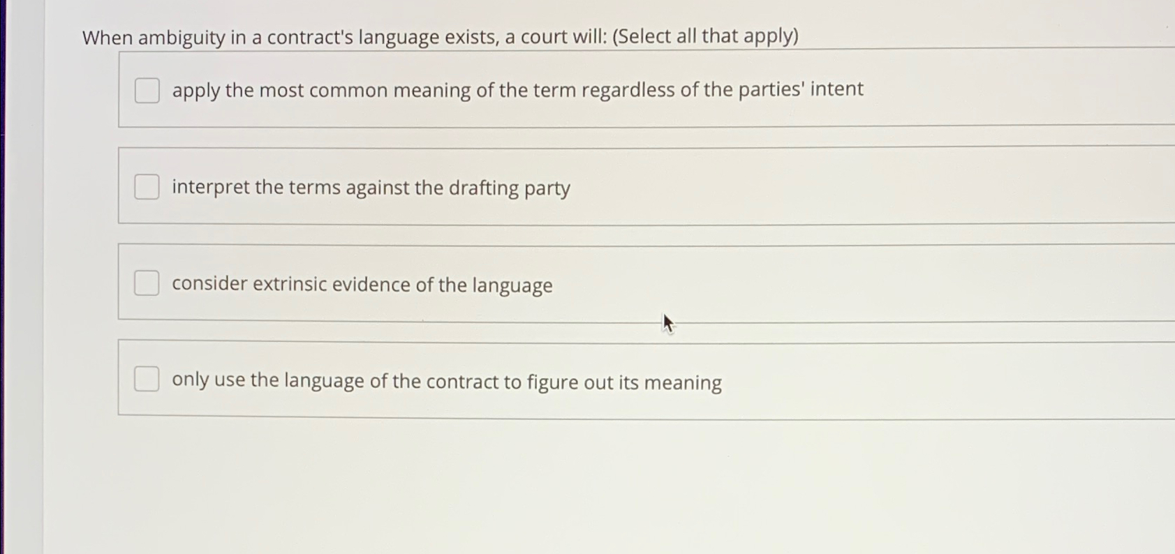 Solved When ambiguity in a contract #39 s language exists a Chegg com