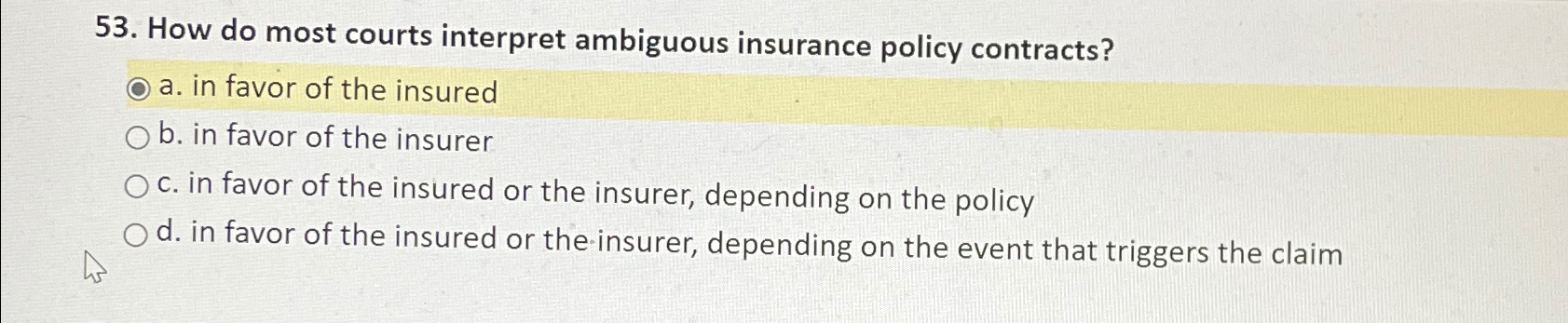 Solved How do most courts interpret ambiguous insurance Chegg com