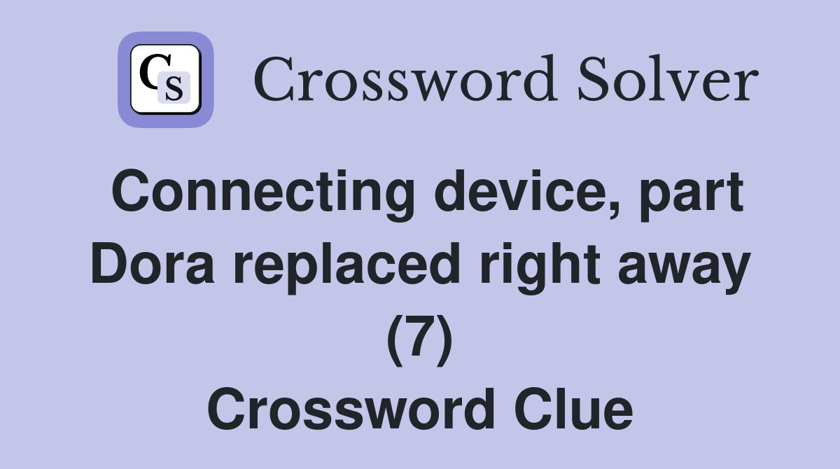 Connecting device part Dora replaced right away (7) Crossword Clue