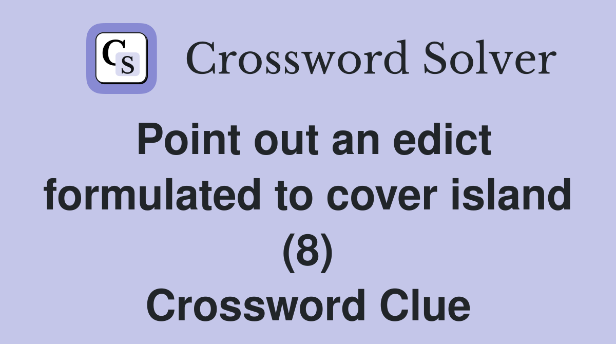 Point out an edict formulated to cover island (8) Crossword Clue