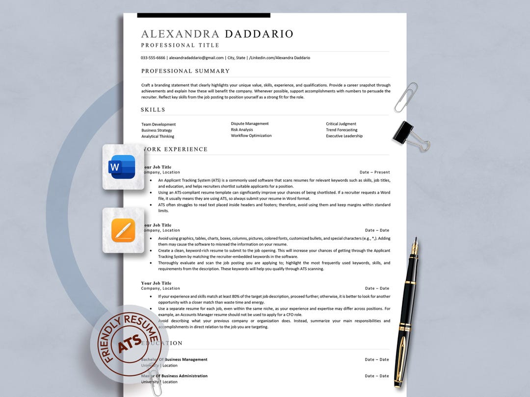 Tech Resume Template: Modern Ats friendly (word Mac Page) Cover