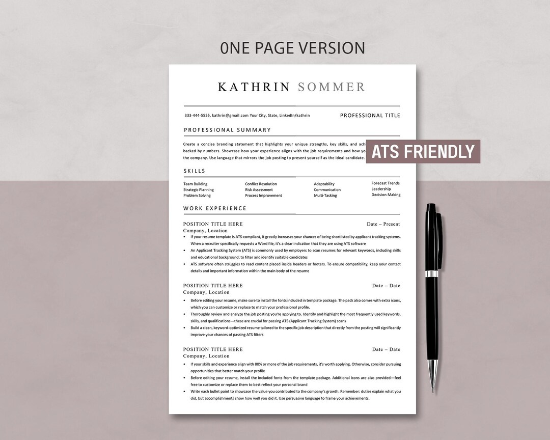 Ats friendly Resume Template 2 page Modern CV Design Cover Letter