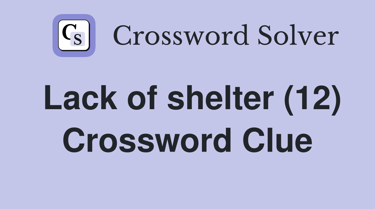 Lack of shelter (12) Crossword Clue Answers Crossword Solver