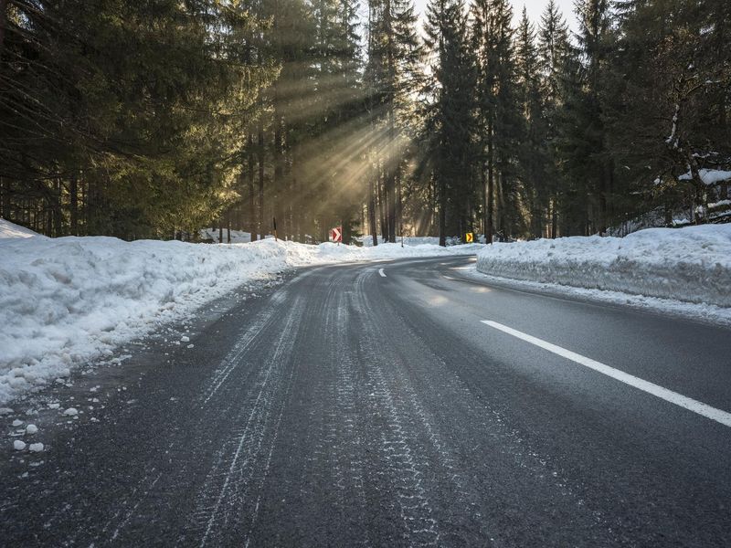Premium Photo Snow covered slippery asphalt road in winter