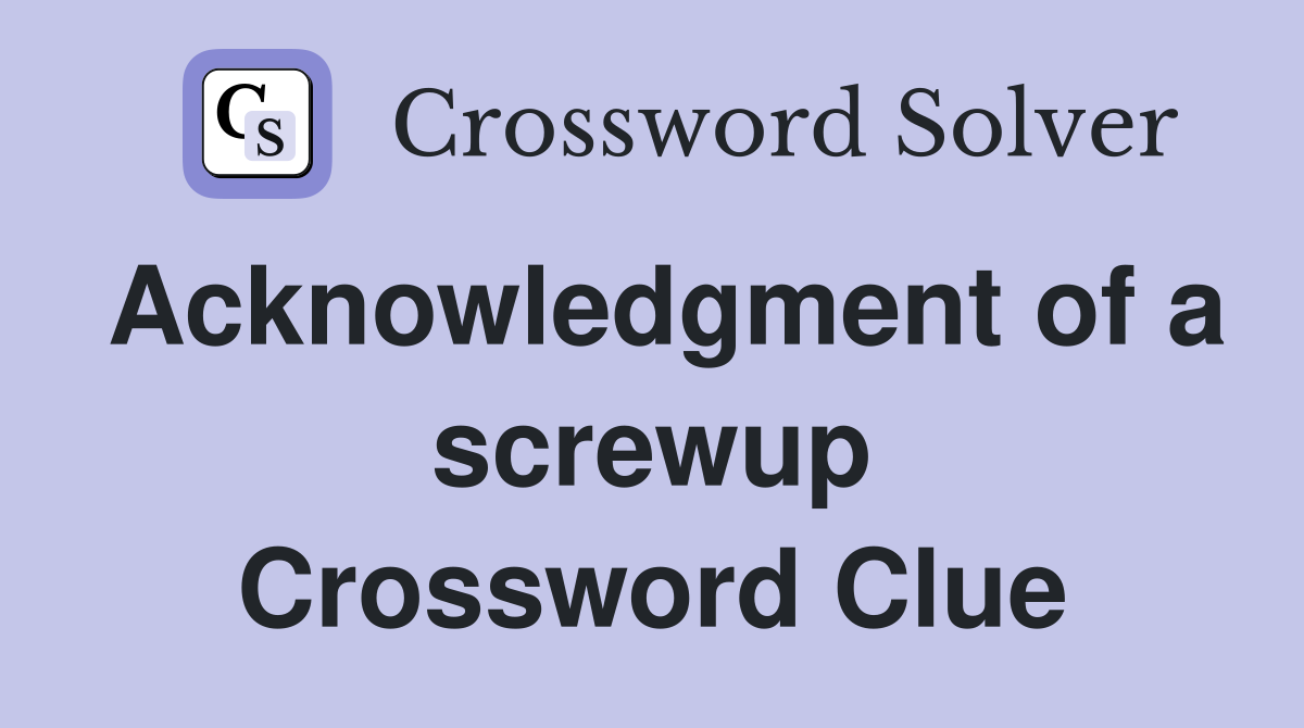 Acknowledgment of a screwup Crossword Clue Answers Crossword Solver
