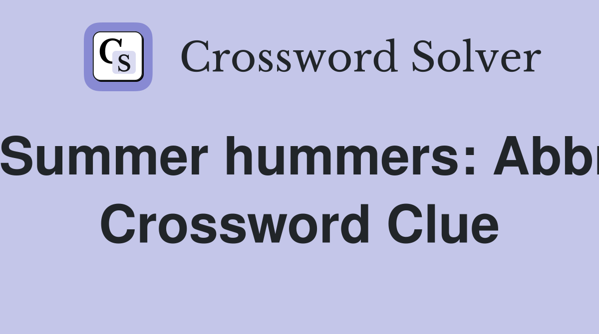 Summer hummers: Abbr Crossword Clue Answers Crossword Solver