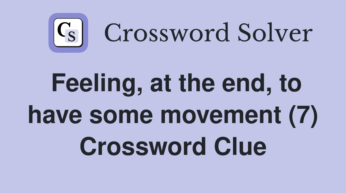 Feeling at the end to have some movement (7) Crossword Clue Answers