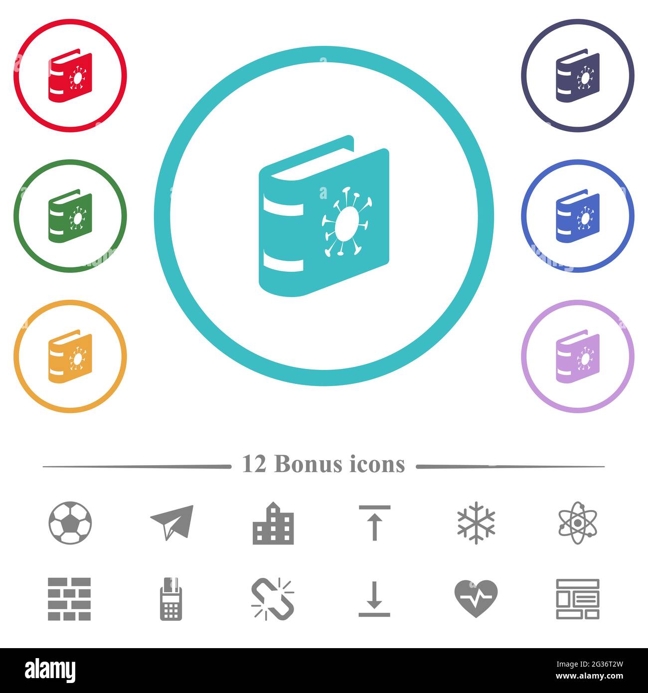 Covid documentation flat color icons in circle shape outlines 12 bonus