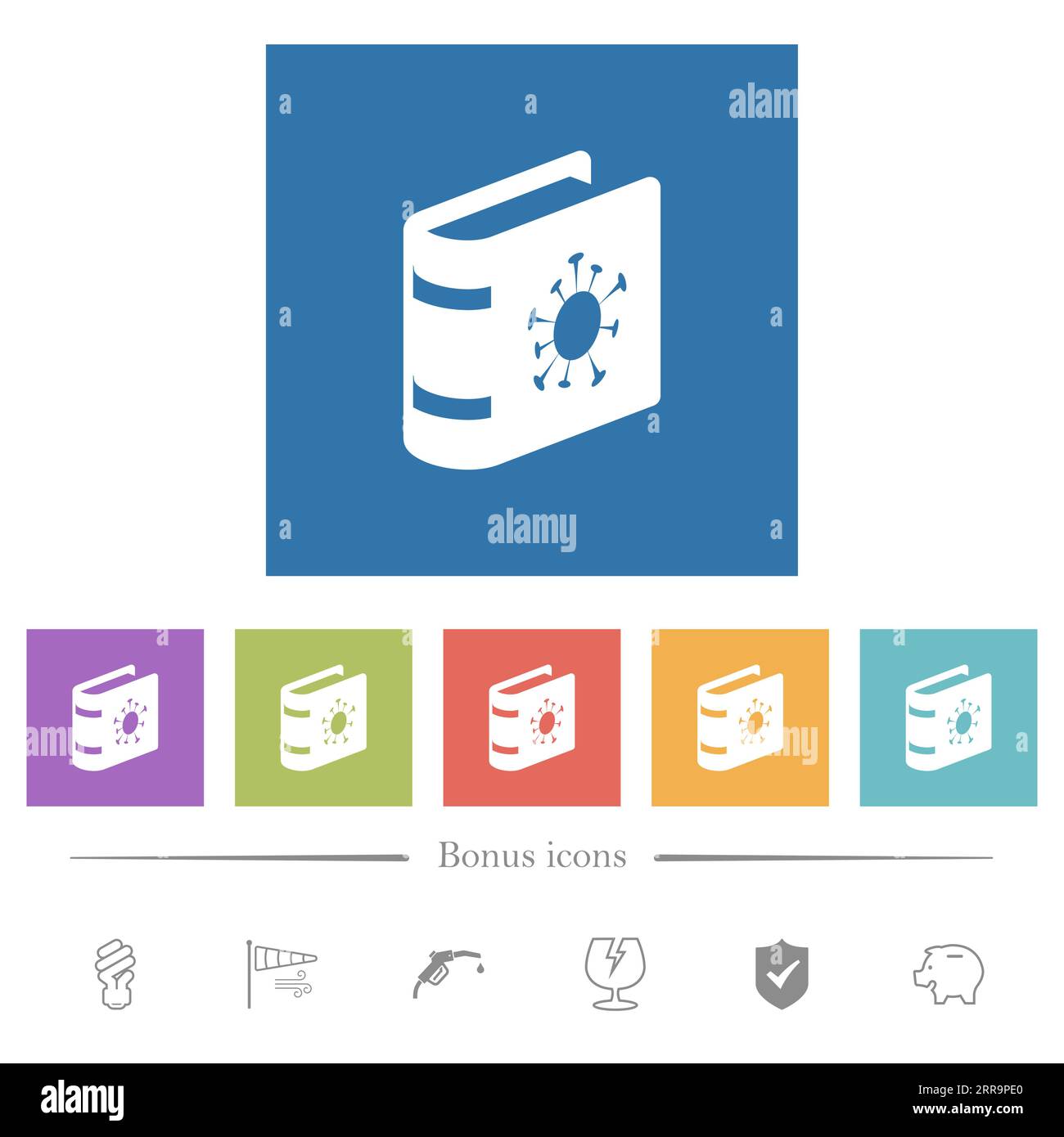 Covid documentation flat white icons in square backgrounds 6 bonus