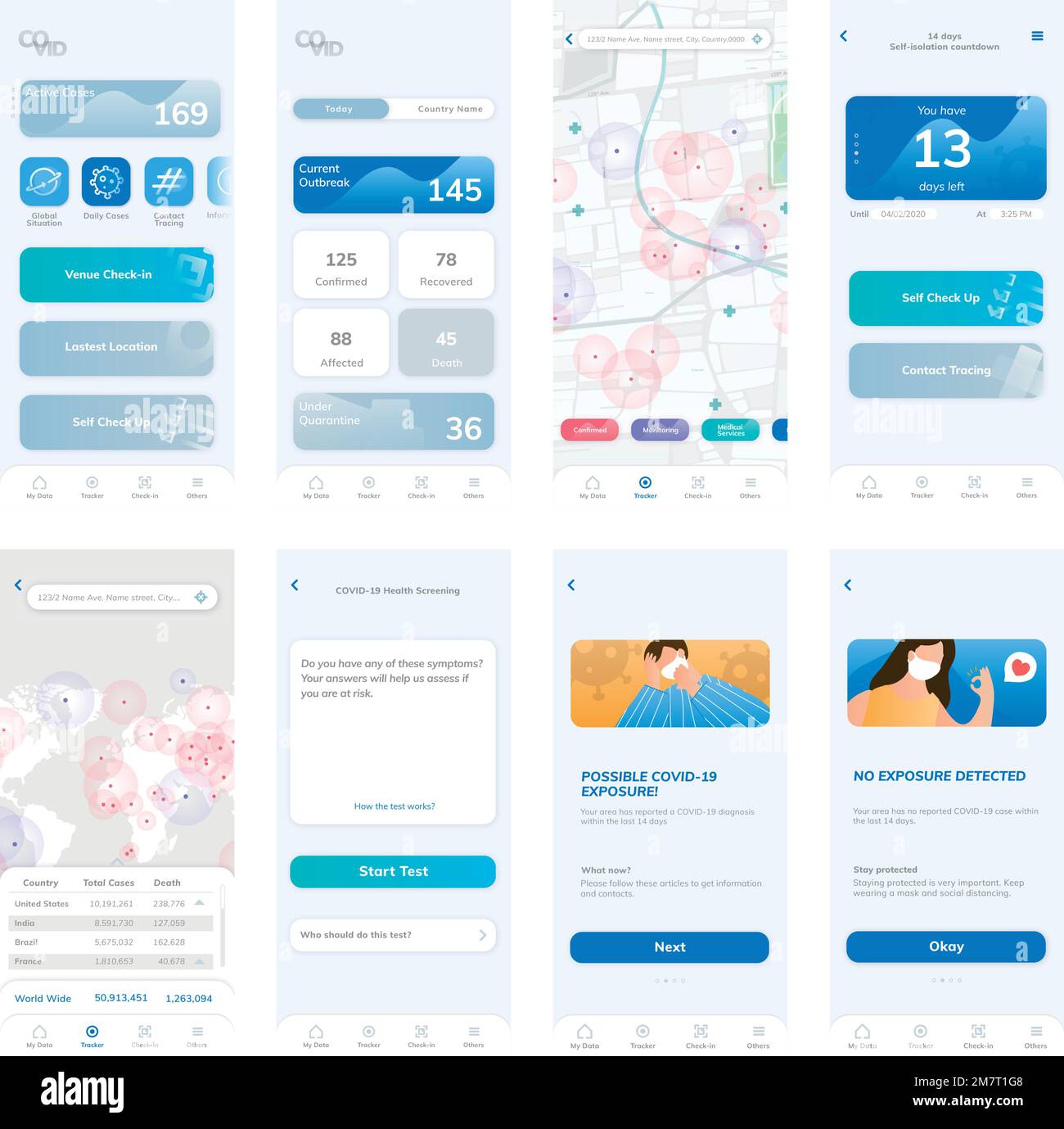 COVID 19 exposure alert app template vector mobile screen Stock Vector