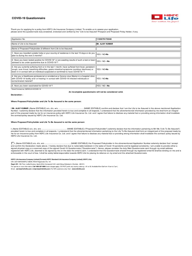 Covid questionnaire 4045E COVID 19 Questionnaire Sanlam 08/ Licensed