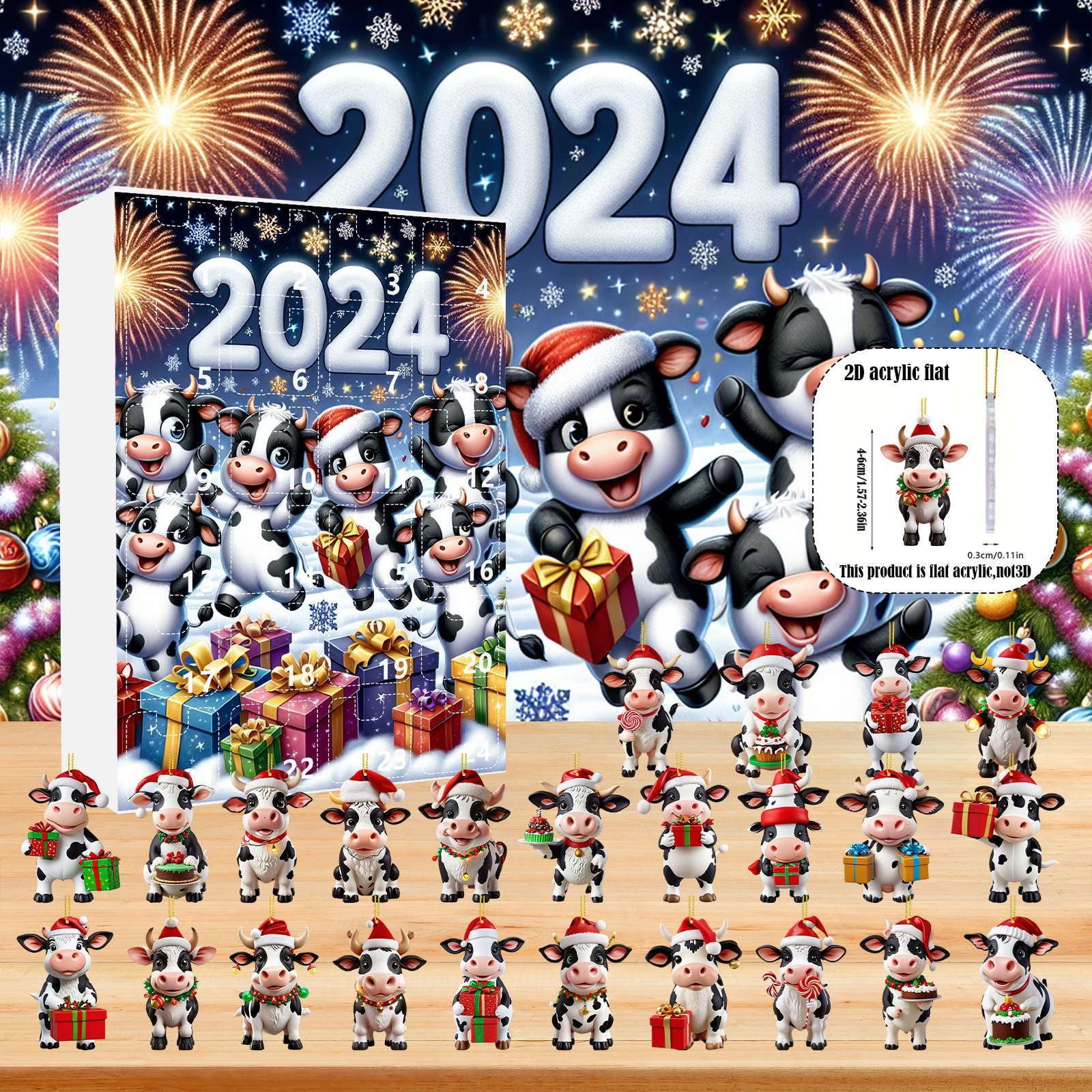 AZIUHA 2024 Christmas Cow Holiday Advent Calendar Collectible Ornaments
