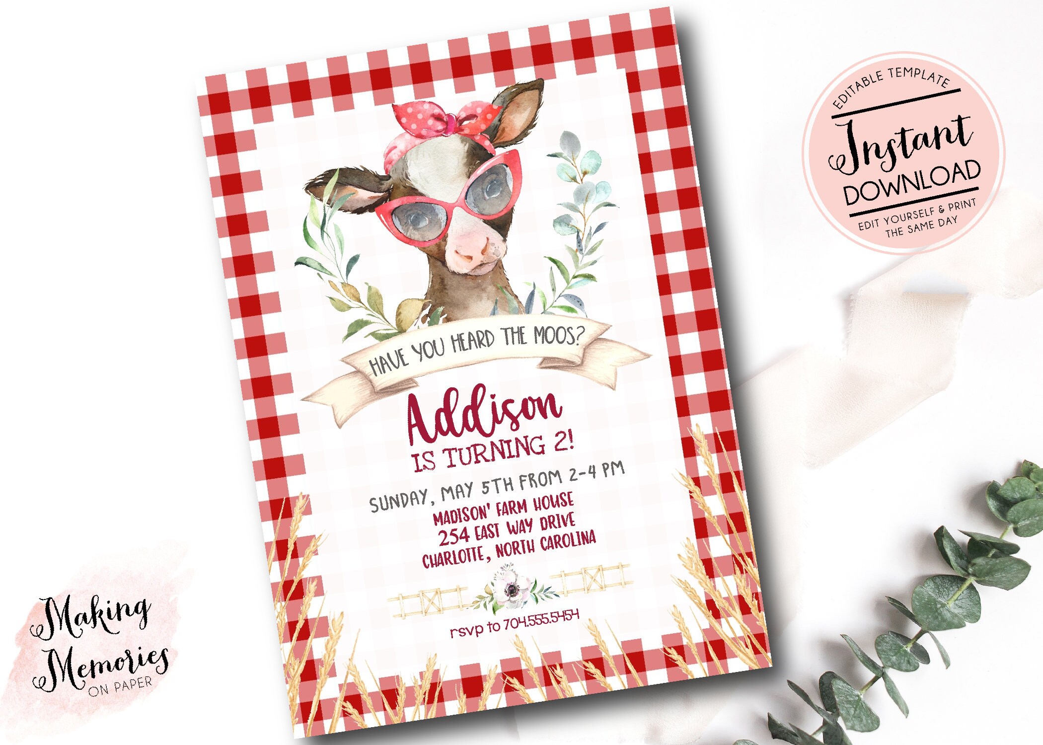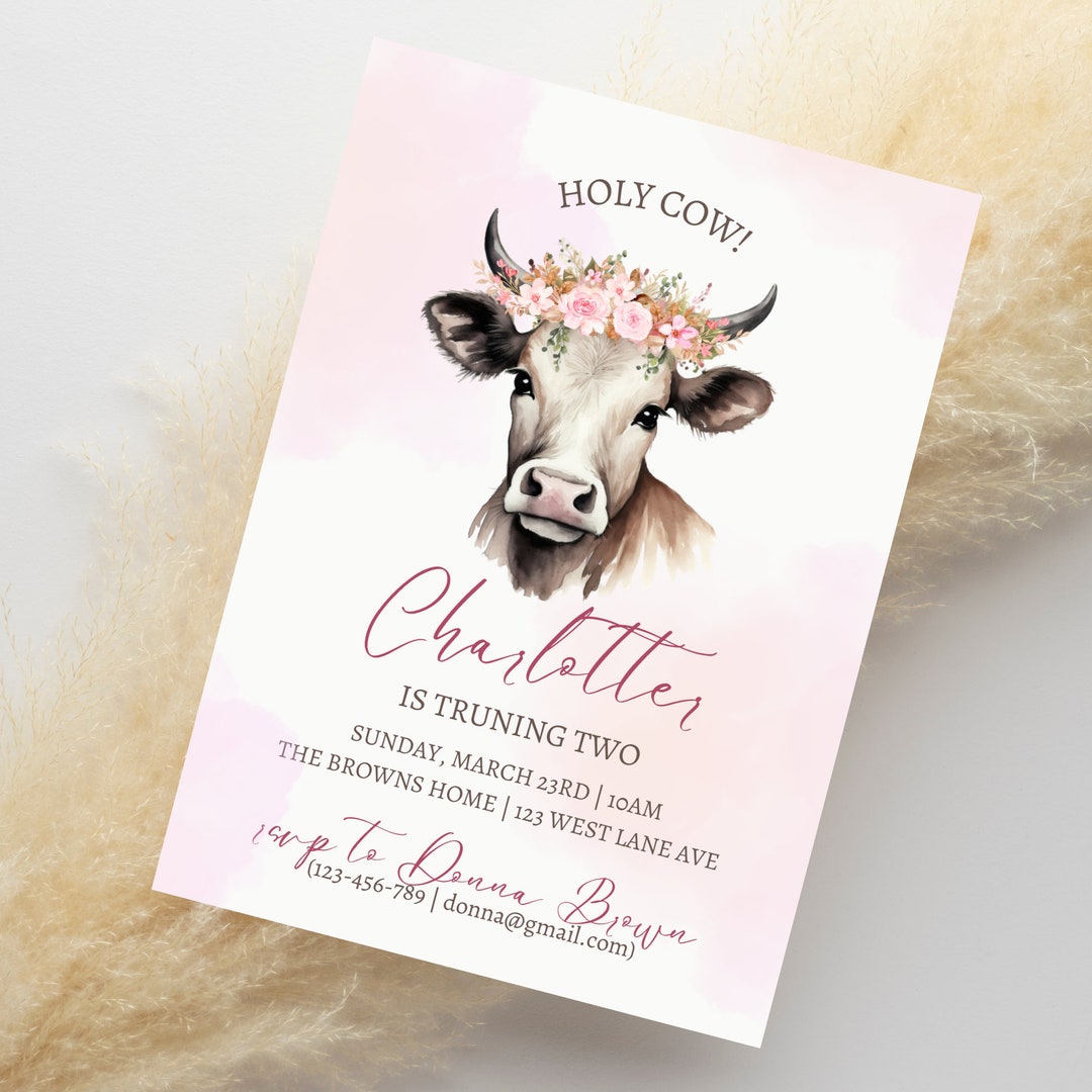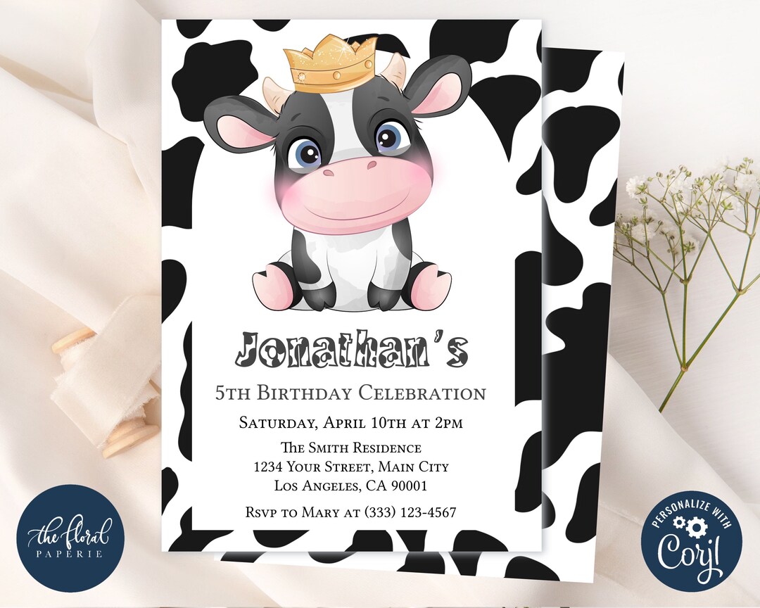 Cow Birthday Invitation Editable Cow Invitation Template Etsy
